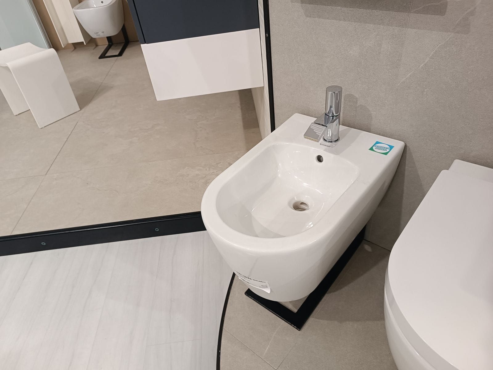 Bidet da esposizione in ceramica bianca lucida a terra filo muro 55×38 cm h 42.